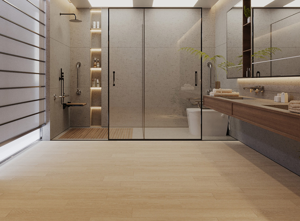 ด้วยผิวสัมผัสที่ป้องกันน้ำและความชื้น ช่วยให้พื้นแห้งไว ลดสาเหตุการเกิดอุบัติเหตุและการสะสมเชื้อรา